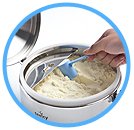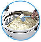 The Scoop Levelling Facility allows a scoopful to be levelled swiftly, accurately and effortlessly with just one hand, in a single scooping cum levelling motion without the need for a levelling utensil and the scoopful is immediately transferred into the feeding bottle. The juggling process is eliminated altogether, thereby reducing the time needed to prepare a feed very significantly. Feeds can now be prepared in a jiffy, in only a fraction of the time normally taken with the use of an external scoop-levelling utensil.