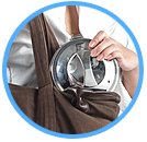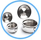 A simple but very innovative Scoop Storage System is provided in the TEECY™ Formula Containers for storing the measuring scoop securely within the airtight stainless-steel container and yet keeping it permanently out of contact with the formula powder stored in it, to permanently eliminate powder contamination from:-